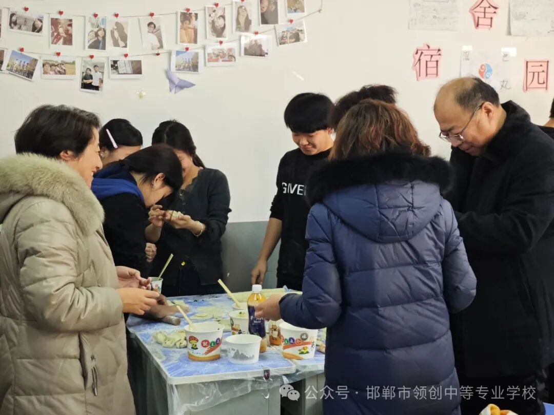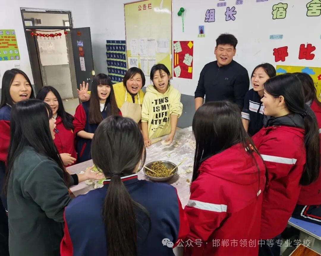 “以前都是在家和爸妈包饺子,今天和校长、老师一起包,感觉特别亲切,就像一家人一样!” 学生们捧着自己包的 “歪扭饺”,脸上满是笑容。