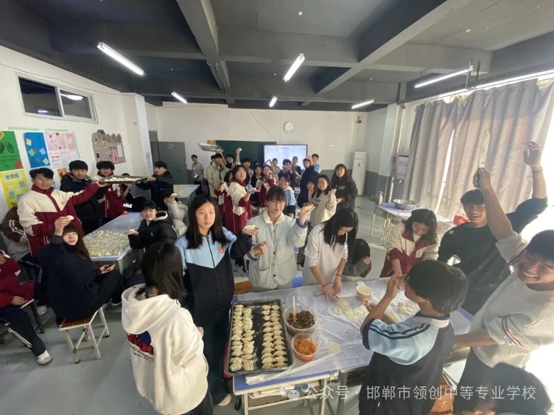 同学们跟着老师学得有模有样,有的手法娴熟快速包出饱满的月牙饺,有的创意十足捏出卡通造型的 “趣味饺”,欢声笑语中,一个个形态各异的饺子在掌心成型,不仅包裹着鲜香的馅料,更裹着师生间的亲密情谊。
