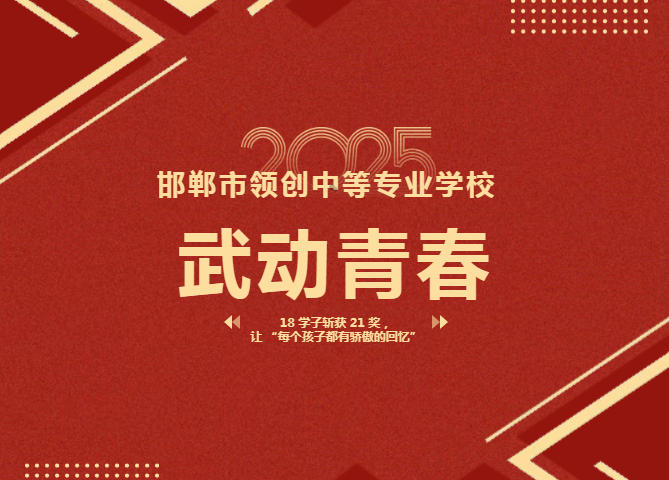 领创中等专业学校 18 名学子组成的参赛队伍在申旭刚、杨紫清两位老师的带领下,奋勇拼搏,从来自 14 个县(市、区)及驻邯武校的 38 支代表队、674 名选手当中脱颖而出,一举斩获 21 项大奖,用实力诠释了 “每个学生都能出彩” 的教育初心。