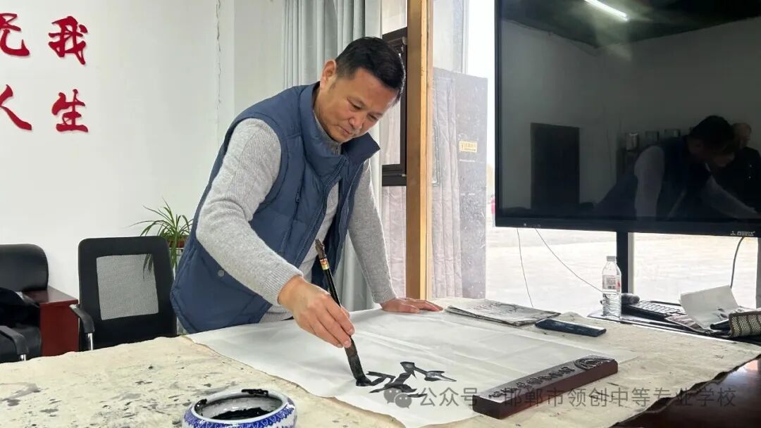 为赓续中华文脉,厚植青少年文化根基,11月10日,邯郸市硬笔书法协会以高度的文化自觉与时代担当,组织骨干书法家队伍,在著名书法家王旭东、张金海的率领下,满怀热忱地走进邯郸市领创中等专业学校,开展“笔墨传情润校园”志愿服务活动。