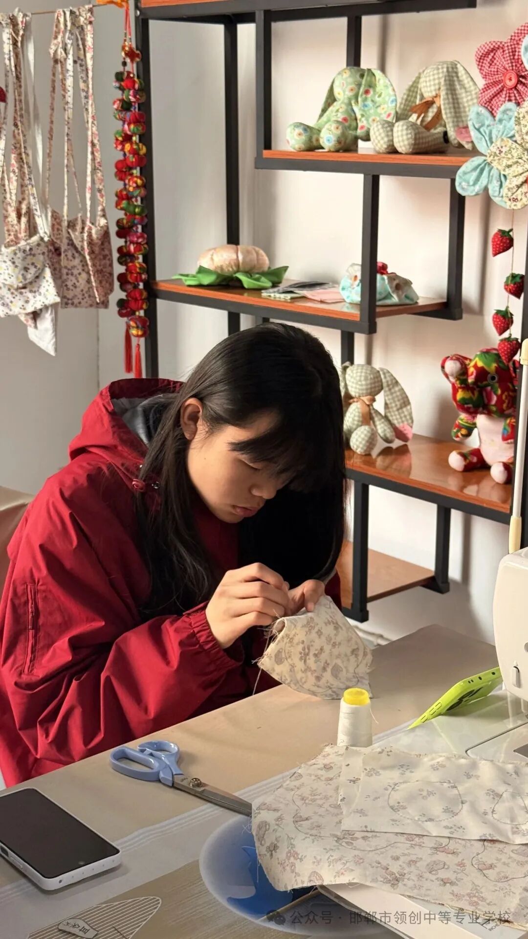而在领创校园,学子们却放下手机、拿起针线,在第二课堂布艺工坊里专注创作,一针一线缝制出小马、绵羊、小象、糖果、向日葵等萌态十足的布艺作品,用灵动双手勾勒青春模样。