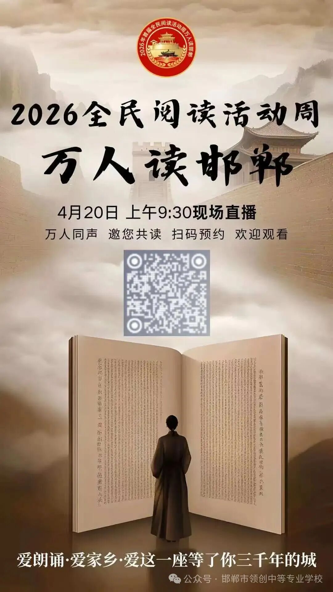 在这诗意满怀、满载希望的四月,2026年4月20日至26日全国首个“全民阅读活动周”如期绽放,我市“万人读邯郸”全民阅读系列活动盛大启幕。