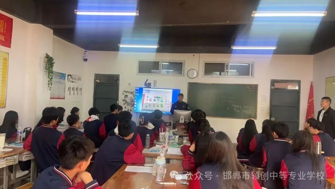 在领创校园里,有这样几位特殊的守护者。他们不仅是校园安全的使者,更是守护成长的引路人——他们就是领创中等专业学校的驻校民警。以“陪伴式安保”为纽带,他们将法治的种子播撒在校园的每个角落,让安全教育可感、可触、可亲近。